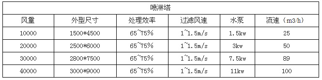 水喷淋吸收塔适用于废气中被吸收组分浓度低,易于与吸收剂反应的体系,具有吸收效果好,阻力小,不易结垢堵塞,设备投资少等优点,适用于喷涂、印刷、化工、电子、医药、沥 青、机械、电器、污水、垃圾、塑料造粒、实验室、污水除臭、垃圾转运站等有机和无机物废气净化除臭除味处理。